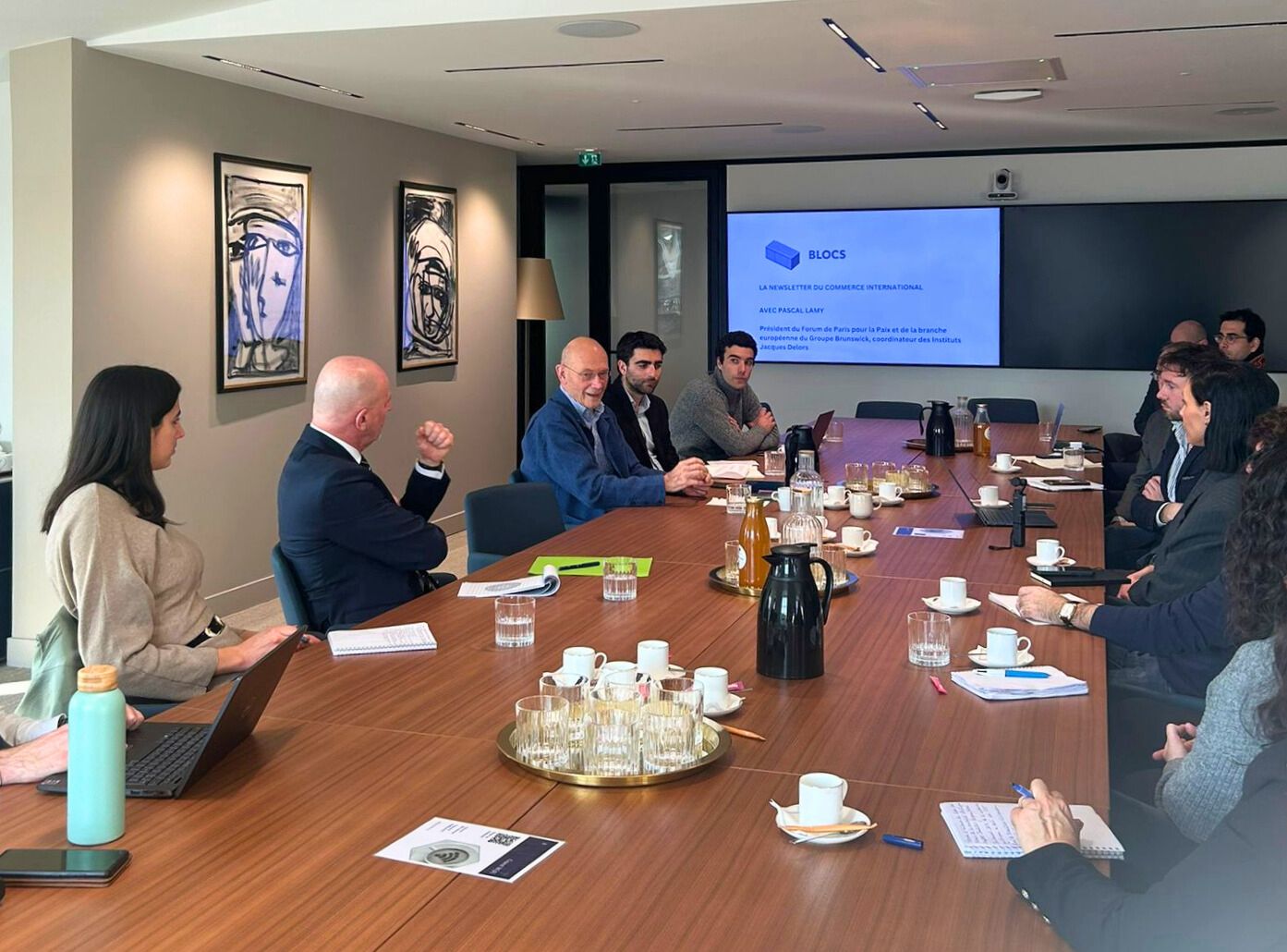 Ambiguïté stratégique et finesse diplomatique, ou bien couardise et désunion ? L’attitude discrète adoptée par les responsables européens à l’égard de Washington interroge. Cette semaine, BLOCS vous propose des éléments de réponse grâce à l’analyse exclusive de Pascal Lamy, coordinateur des think tank Jacques Delors. L’ancien Directeur général de l’OMC et commissaire européen au Commerce nous a en effet reçus lundi après-midi dans les locaux de Brunswick avec quelques-uns de nos lecteurs les plus fidèles, à l’occasion d’un évènement organisé pour le premier anniversaire de votre newsletter du commerce international.
